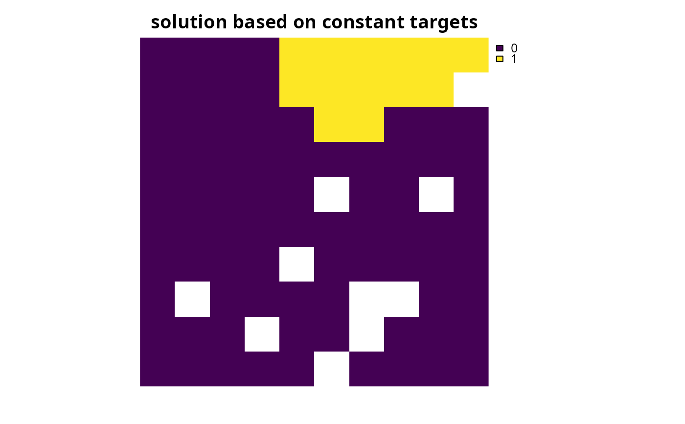 plot(s1, main = "solution based on constant targets", axes = FALSE)